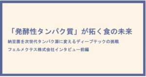 博報堂オープンイノベーション局のメンバーによる、新たな事業創造の可能性をテーマとした記事にて、フェルメクテス代表・大橋への取材記事をご掲載いただきました。 記事タイトルは、「『発酵性タンパク質』が拓く食の未来~納豆菌を次 […]